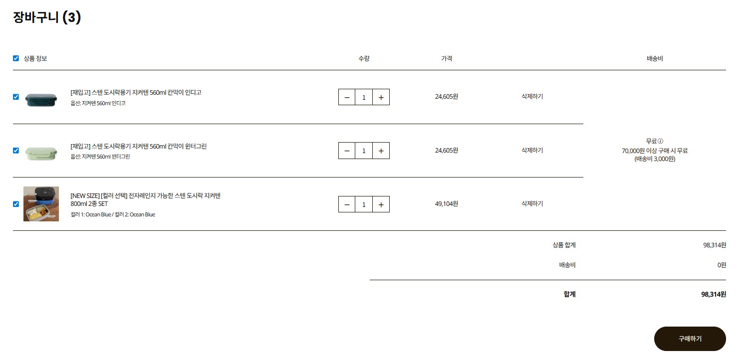 제품 합계 : 98,314원 + EMS 배송비 59,500원
