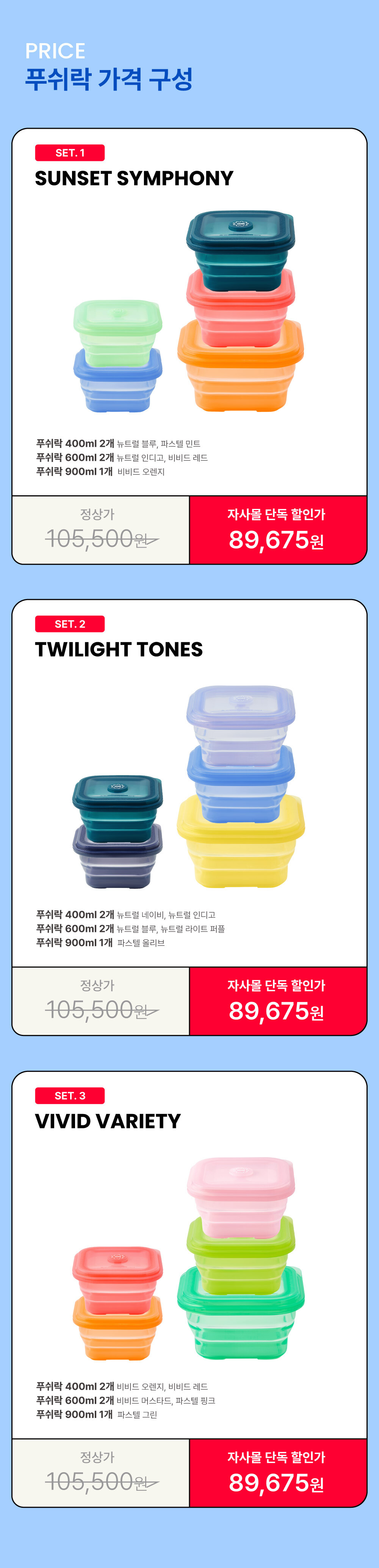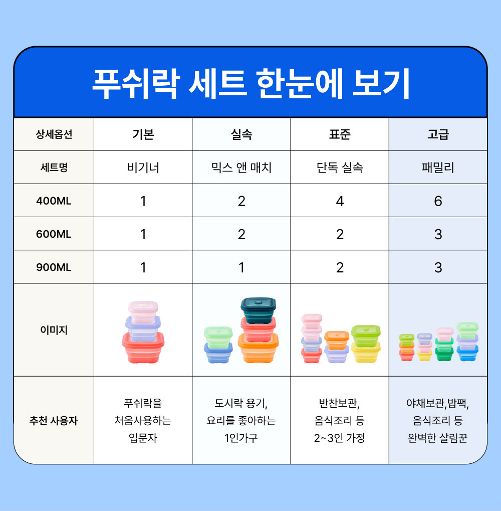: 지저분한 부엌 때문에 스트레스 받고 있나요? 푸쉬락의 독특한 3단 디자인이 공간을 깔끔하게 만들어, 여유있는 공간을 효율적으로 활용하세요. 게다가 휴대성 덕분에 피크닉이나 캠핑에서도 편리함을 느낄 수 있습니다.