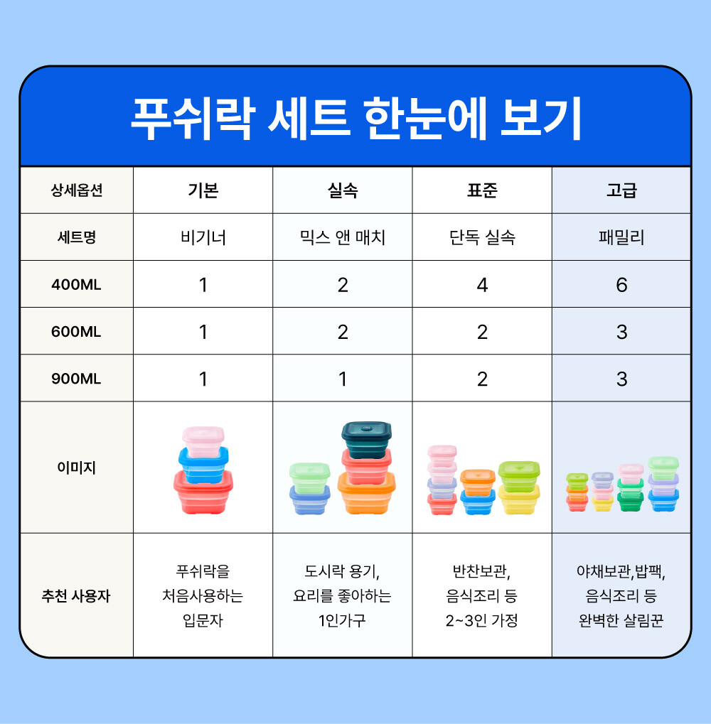 : 지저분한 부엌 때문에 스트레스 받고 있나요? 푸쉬락의 독특한 3단 디자인이 공간을 깔끔하게 만들어, 여유있는 공간을 효율적으로 활용하세요. 게다가 휴대성 덕분에 피크닉이나 캠핑에서도 편리함을 느낄 수 있습니다.