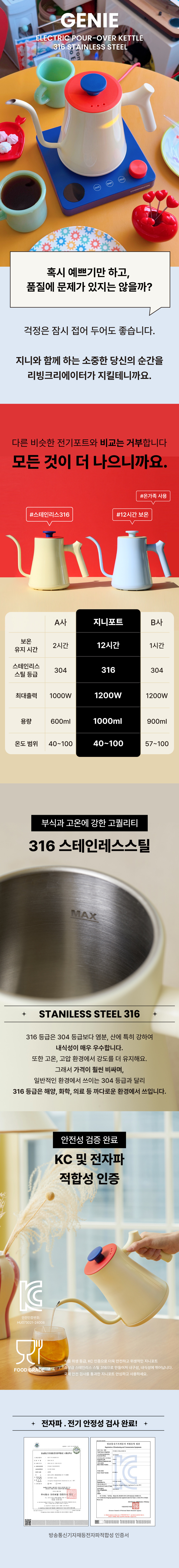 [할인가 적용] 1도 조절 전기포트 지니 VIVID