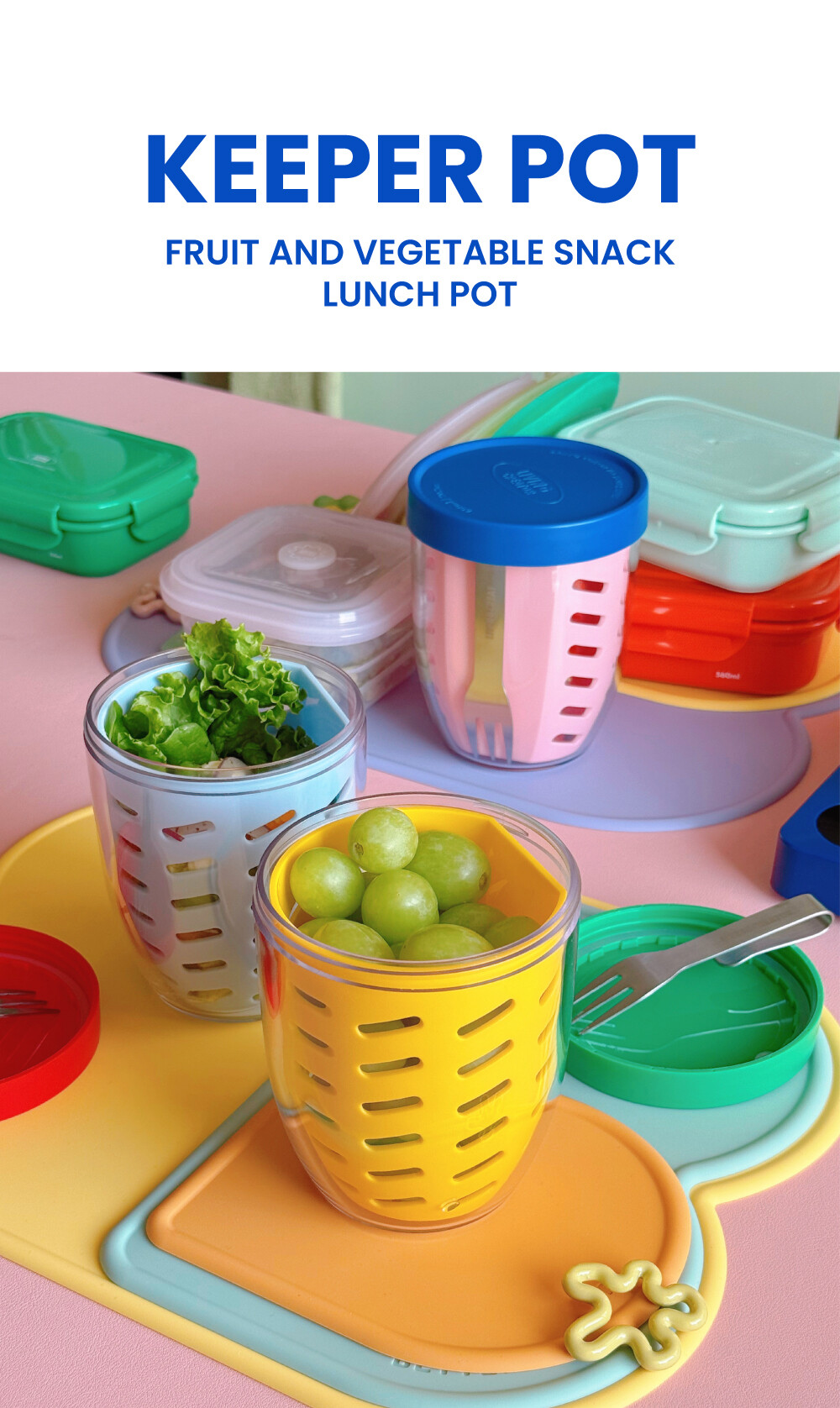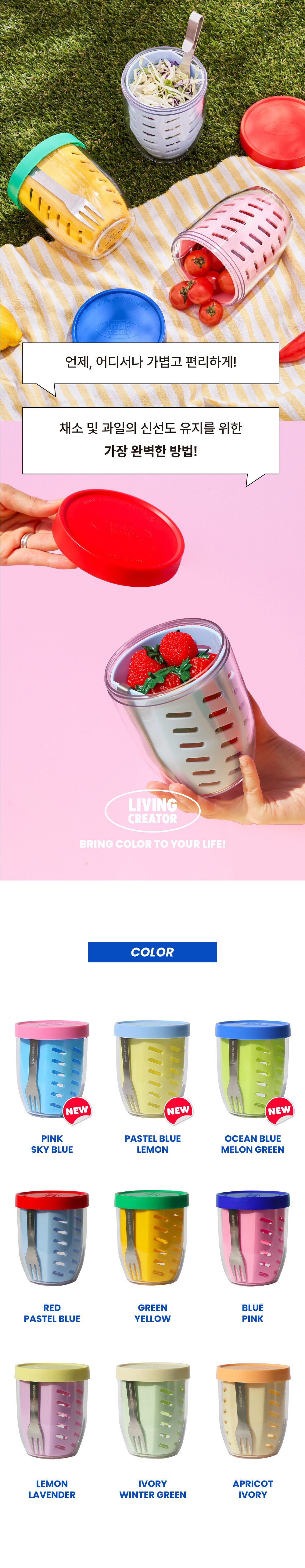 - 뚜껑 속 숨은 포크로 외출 시 식기 없이 간편하게사용할 수 있어요.