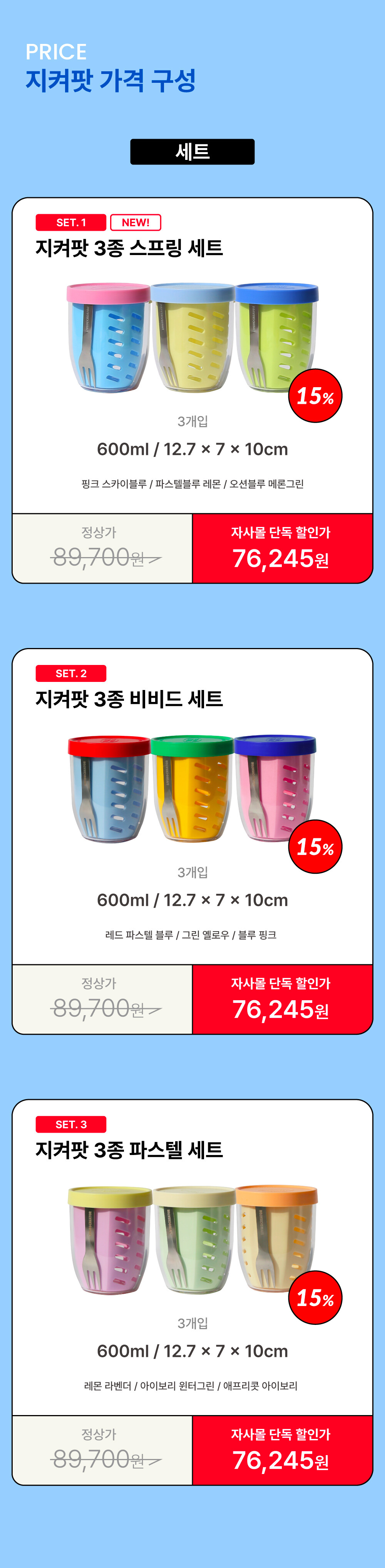옵션선택하세요.지켜팟 3개입 핑크/스카이블루, 파스텔블루/레몬, 오션블루/메론그린 (품절)