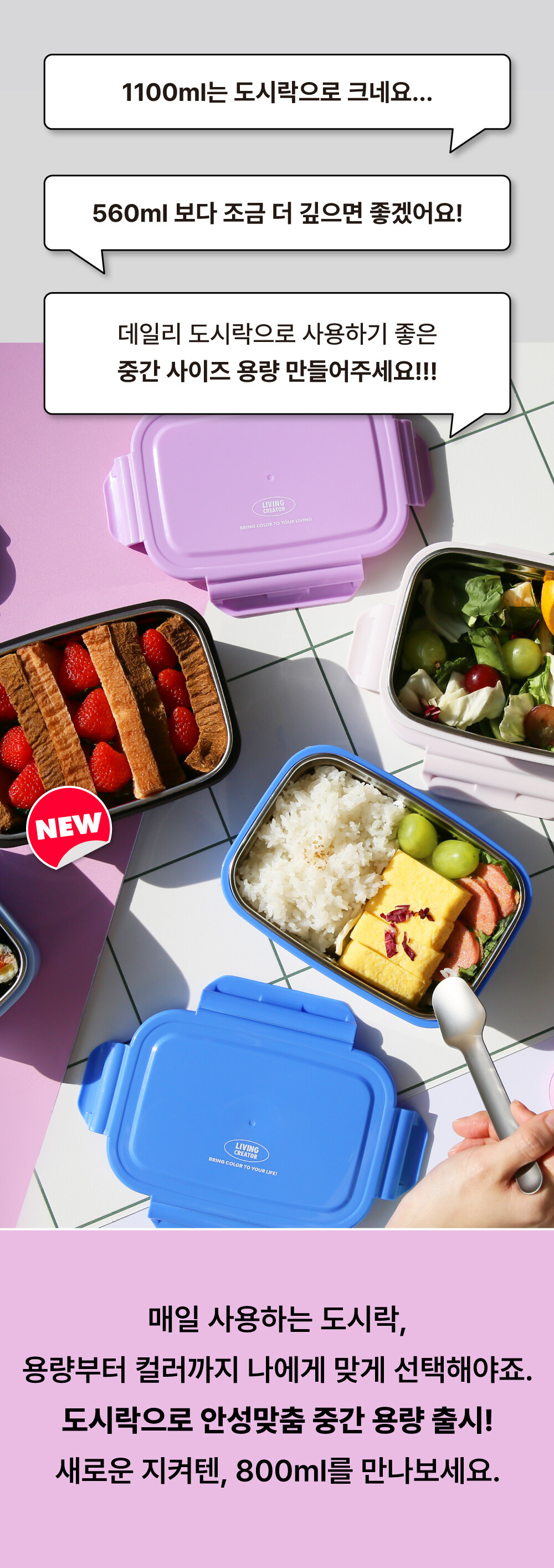 "1100ml 보다 좀 더 작았으면 좋겠어요!"