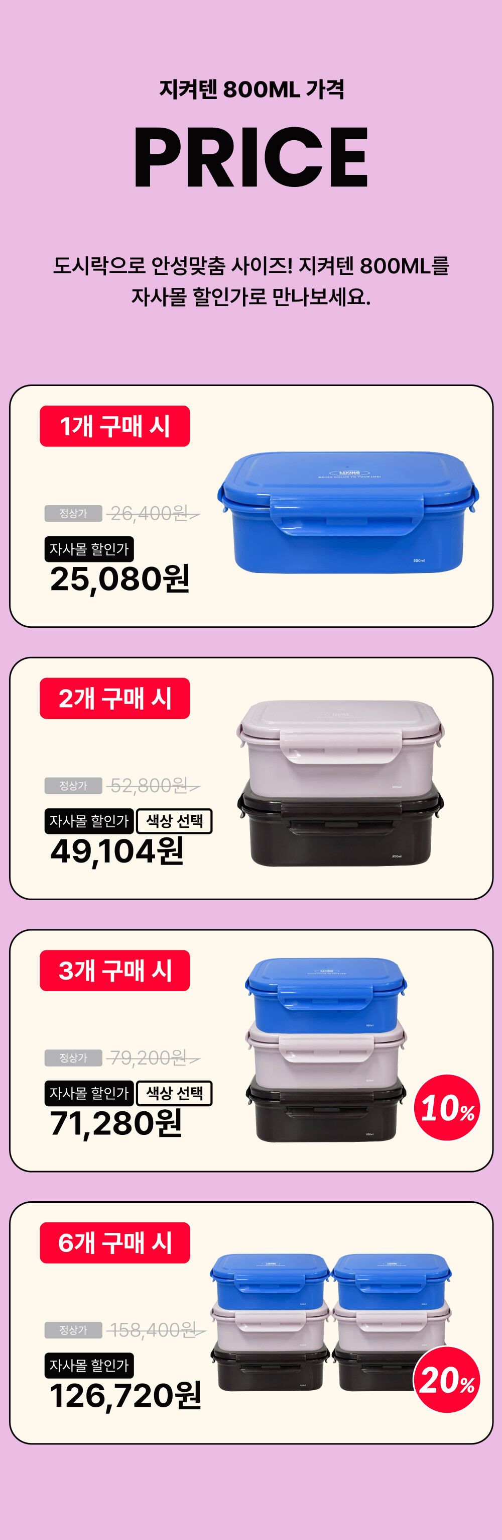 [NEW SIZE] [컬러 선택] 전자레인지 가능한 스텐 도시락 지켜텐 800ml 2종 SET