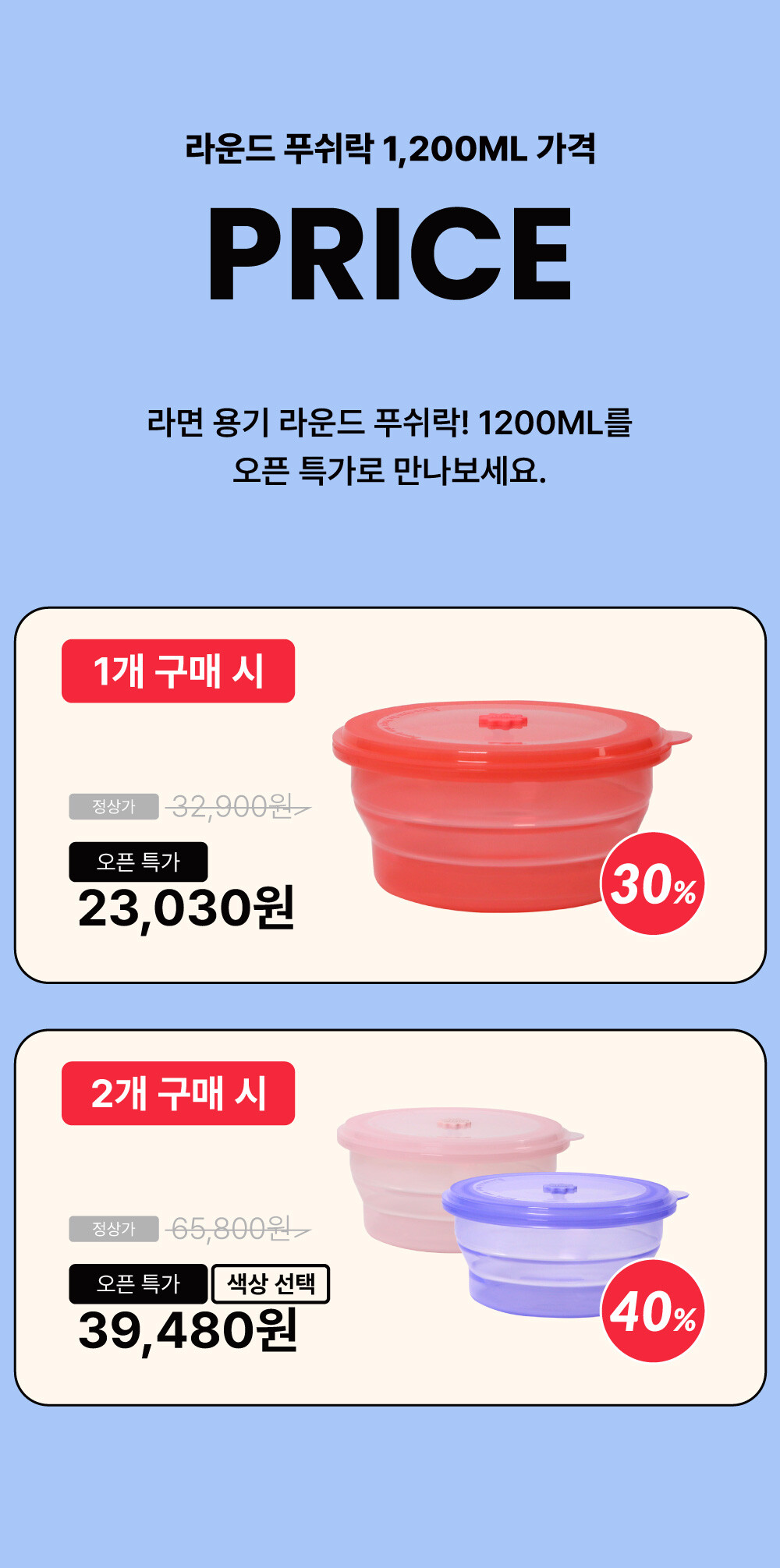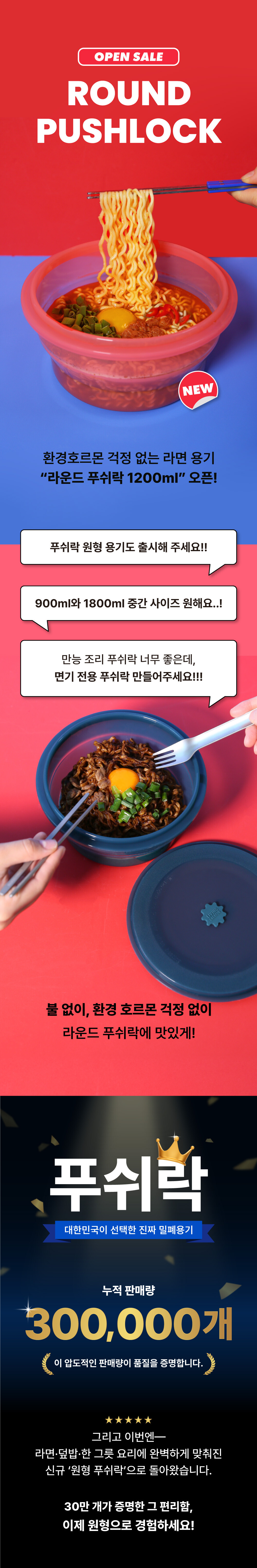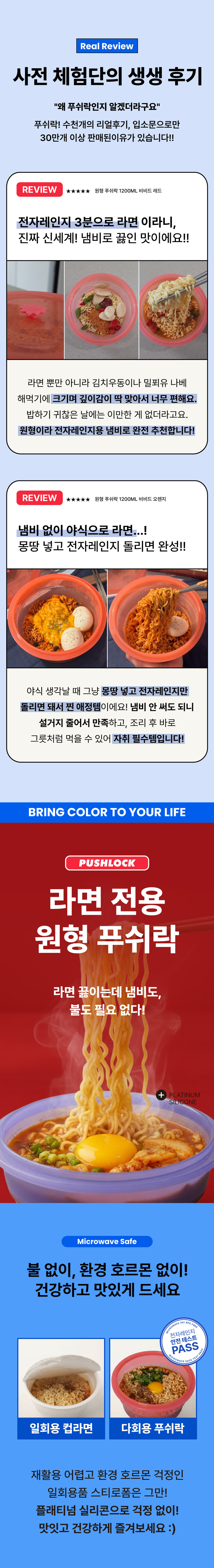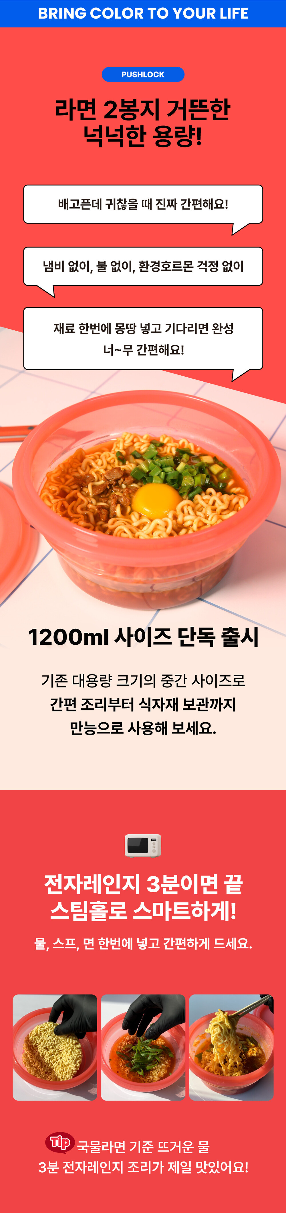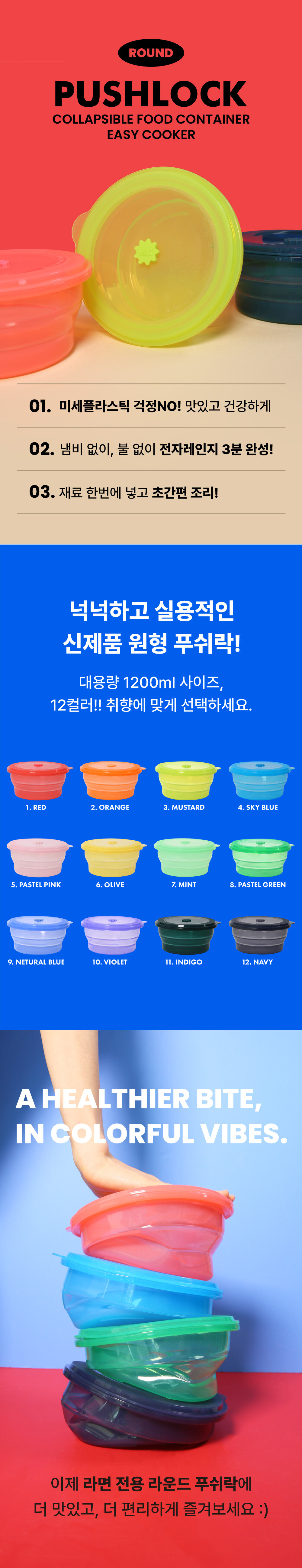 [신상] [2종 컬러선택] 1200ML 전자레인지 라면용기 원형 푸쉬락(지켜락) 12컬러